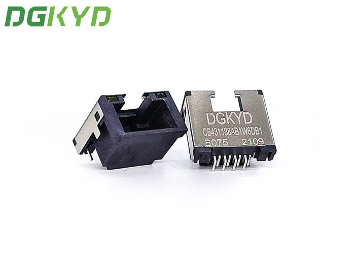 Jack RJ45 SMT Profil Rendah Dip Lindung Logam Konektor RJ45 papan sink 4.2 DIP dengan pelindung dan lampu DGKYDCB421188AB1W6DB1075