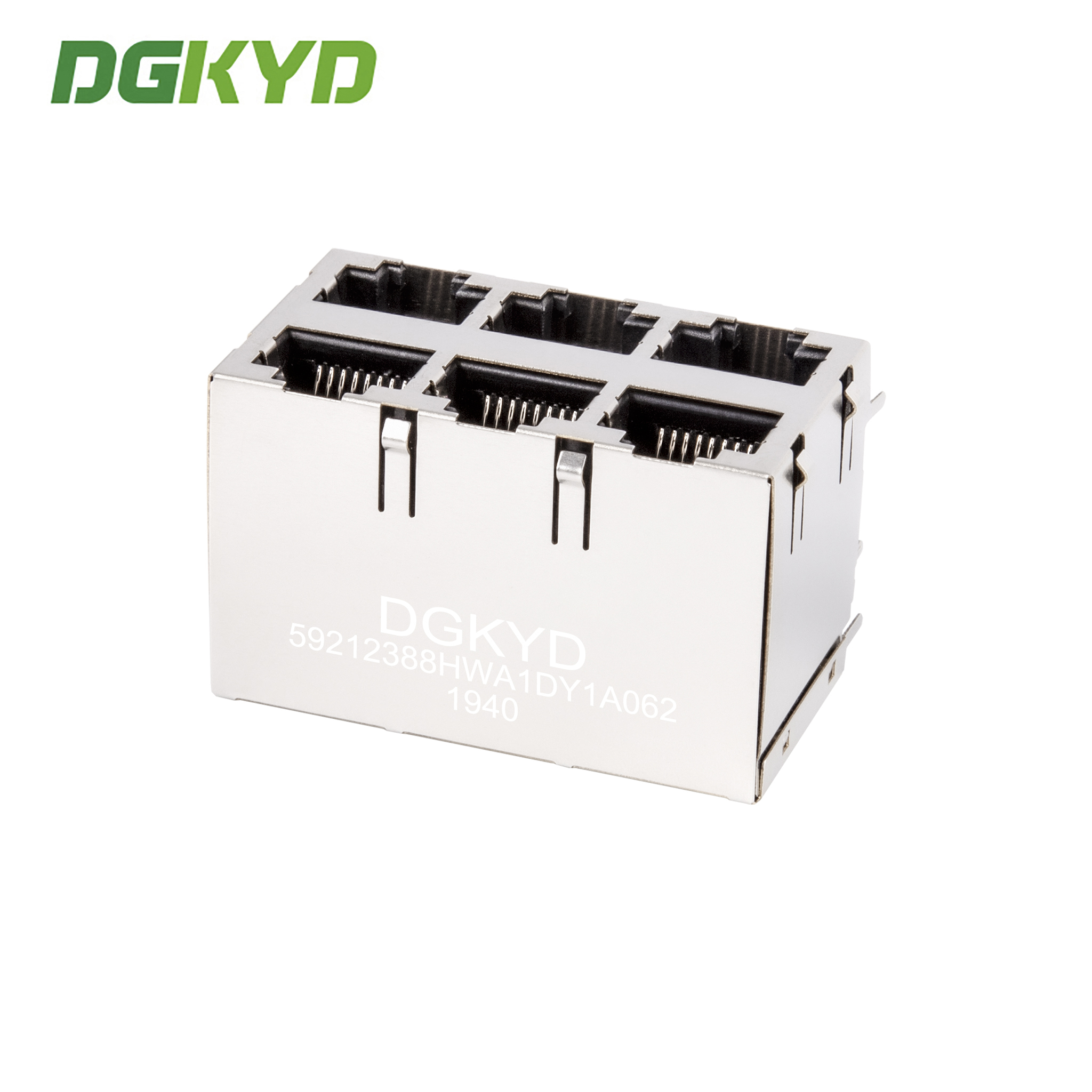 Konektor berpelindung multi-port RJ45 DGKYD59212388HWA1DY1A062 tanpa lampu, soket Ethernet 8P8C tanpa pegas isolasi