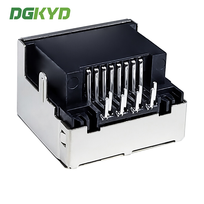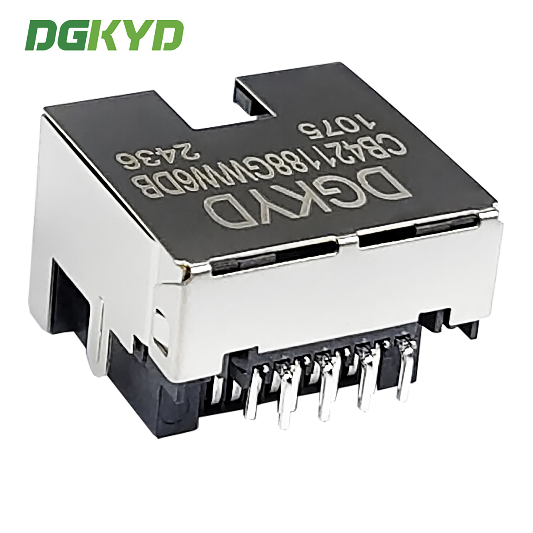 Jack RJ45 SMT Profil Rendah Dip Lindung Logam Konektor RJ45 papan sink 4.2 DIP dengan pelindung dan lampu DGKYDCB421188AB1W6DB1075