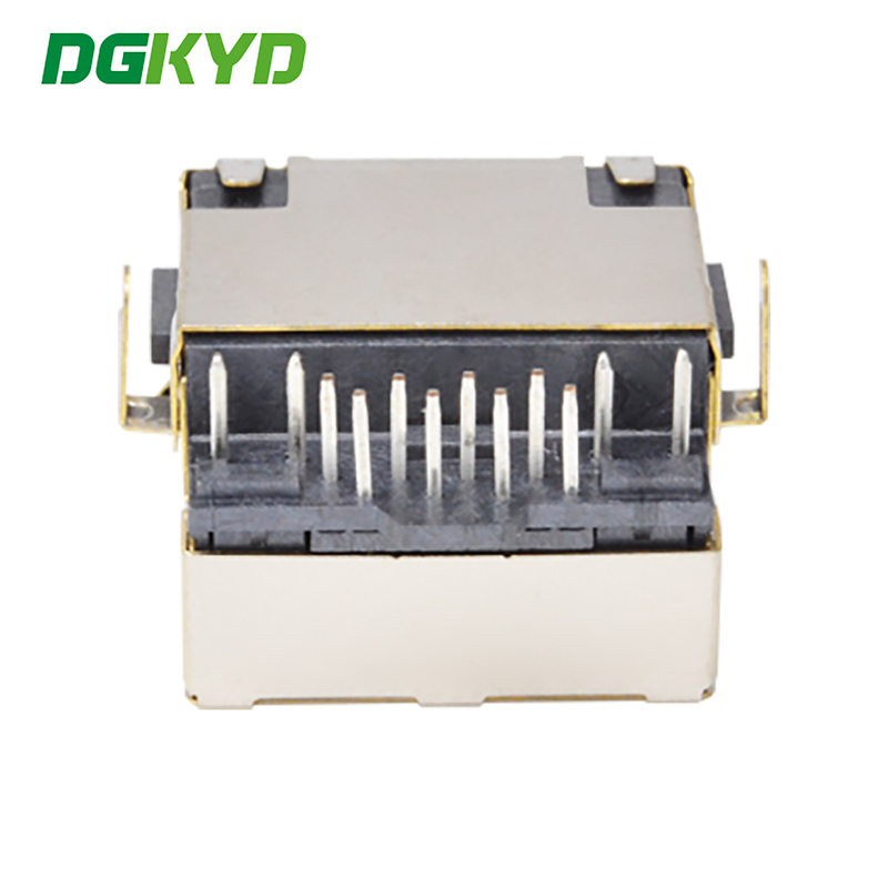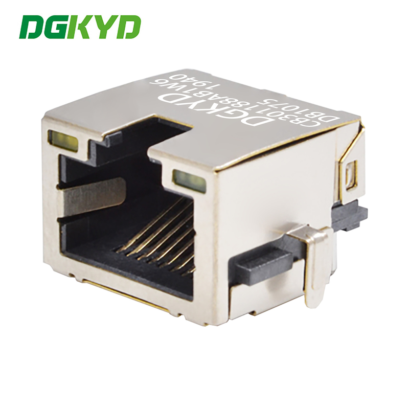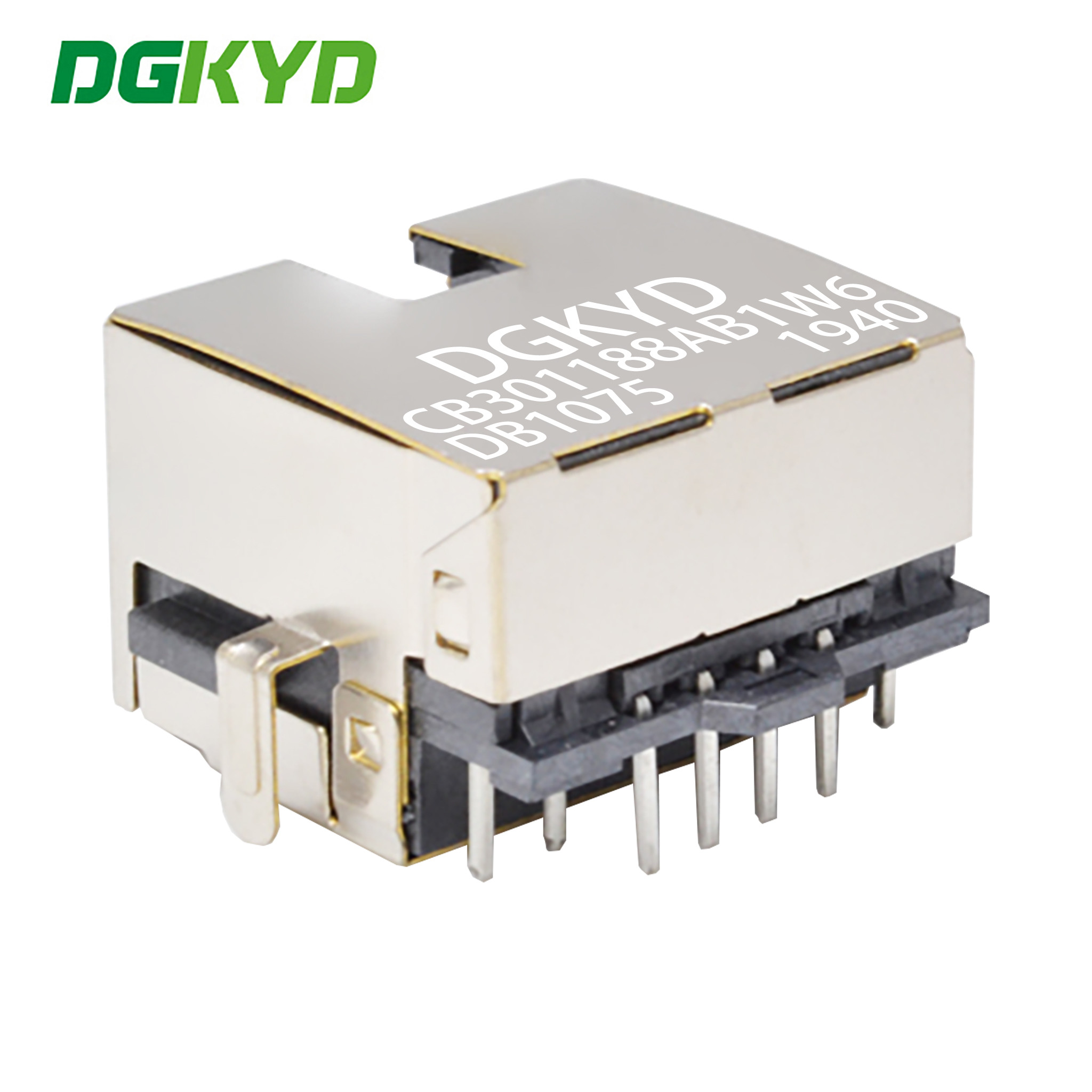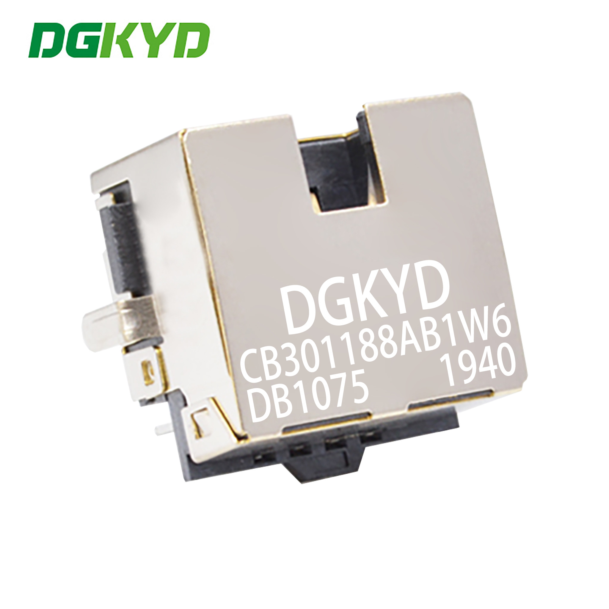 Jack RJ45 SMT Profil Rendah Dip Lindung Logam Konektor RJ45 papan sink 4.2 DIP dengan pelindung dan lampu DGKYDCB421188AB1W6DB1075