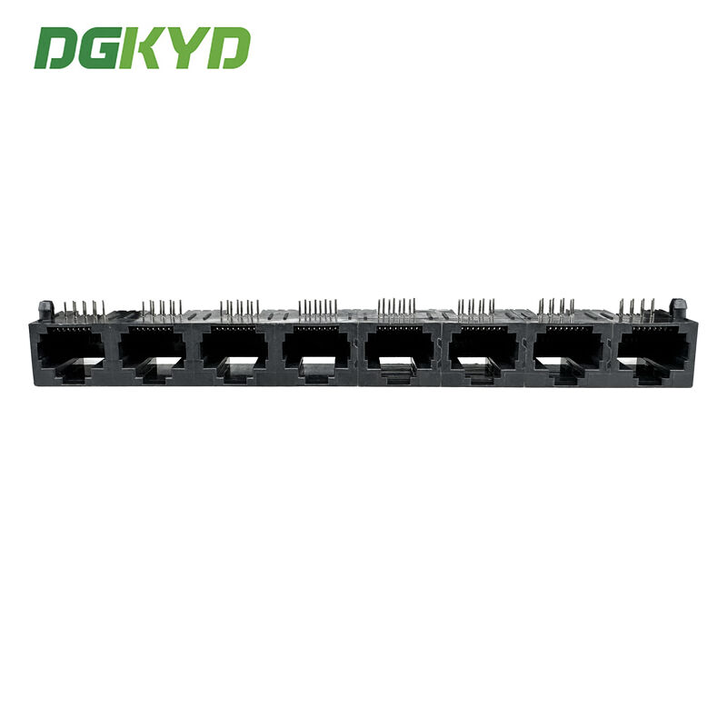 Konektor port ganda RJ45 tanpa filter bawaan, tanpa strip lampu, pin pelindung depan 4.57mm DGKYD112B035HWA1D13